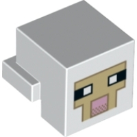 Part details 19727pr0004 Minifig Head Special, Cube with Rear Ledge, Pixelated Tan Face with Pink Mouth Print (White)