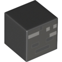 Part details 19729pr0013 Minifig Head Special, Cube with Minecraft Wither Skull Skeleton Face Print (Black)