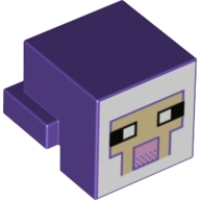 Part details 19727pr0007 Minifig Head Special, Cube with Rear Ledge, Pixelated White and Tan Face with Dark Purple Outline and Pink Mouth Print (Dark Purple)