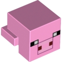 Part details 19727pr0002 Minifig Head Special, Cube with Rear Ledge, Pixelated Black, White and Dark Red Face Print (Pig) (Bright Pink)